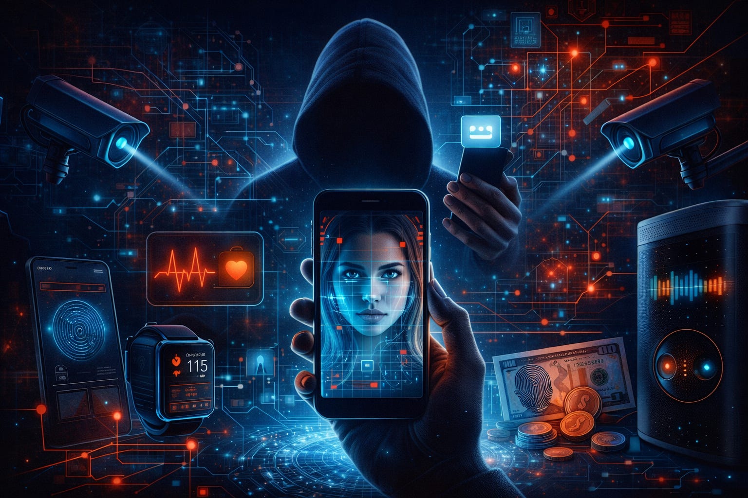 Each device is presented as an extension of human capability: improving memory, health, performance. Yet every extension is also a sensor. And every sensor is a data collection point.